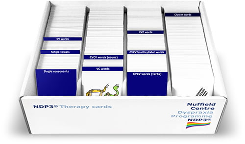 The Programme comprises five wiro-bound folders as detailed below; includes an UPDATED for 2024 21-page NDP3 Speech Assessment with flip-books; a set of 42 A5 colour articulogram cards; an easy-to-use engineered box of therapy cards (four sets of 478 cards, with laminated dividers), all contained within a robust packing carton.